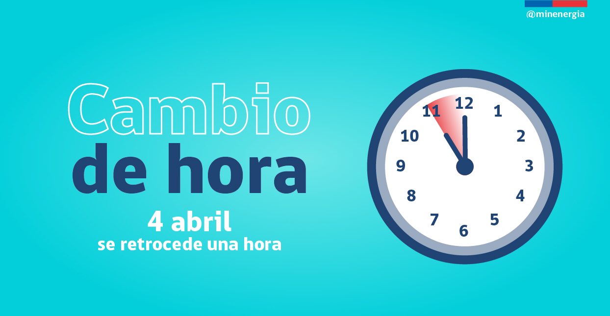 Entregarles información, explicarles con ejemplos que hay un cambio de horario y por qué se produce. ¿quiénes deben cambiar la hora? Este día, cuando el reloj marque las 23:59, a las 00:00 horas del domingo, la hora deberá retrasarse en 60 minutos, por lo que los dispositivos marcarán las 23:00 horas del sábado. La ley 8.777 estableció que el nuevo cambio horario (de invierno) empezara en chile continental a contar del primer sábado del mes de abril de 2021 y que se extendiera hasta las 00:00 horas del primer sábado del mes de septiembre 2021, donde los relojes se atrasarán en 60 minutos. Conoce cuando se debe realizar el cambio de hora en chile, para así volver al horario de invierno.